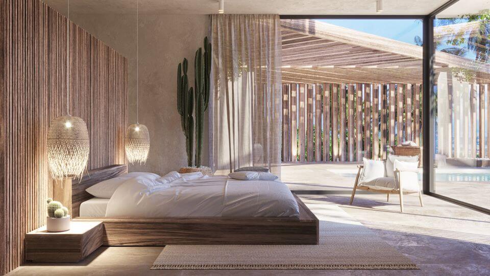 Accommodation of 65m², with separate double bedroom, spacious living room with integrated open plan kitchen, bathroom and with large garden and views to the pool.